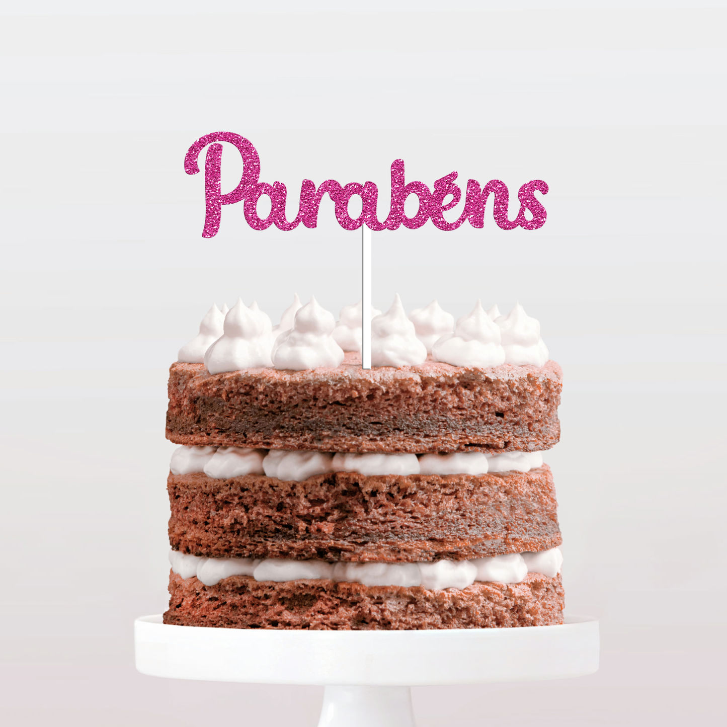 Topo de Bolo Papel Glitter Parabéns - Modelo 2